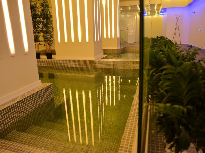 DEORUM SPA Sauna umeda Sauna cu infrarosu Bai kneipp Jacuzzi cu geiser Bazin cu apa sarata din Marea Moarta Bazin apa dulce cu litiu Grota cu abur si aeromasaj Culoar tropical Dusuri emotionale (alternante) MED SPA Curenti: 1) frecventa joasa: -curenti Trabert, Diadinamici, etc 2) de frecventa medie : - curenti Interferentiali ( NEMECTRON) 3) de frecventa inalta: - ultrasunete, unde scurte, microunde etc B. Termoterapie : termogel , infrarosii Solux, ultraviolete C. Terapie cu laser D. Hidroterapie : - bai cu apa termala - bai galvanice - dus subacval - bai cu infuzii de plante