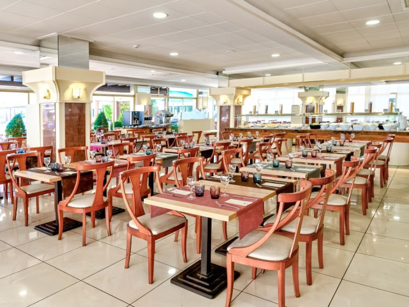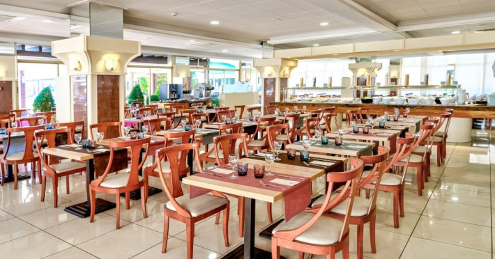Mese Tipuri de mancare si mese: Mic dejun si cina. Pentru o suprataxa All Inclusive (supliment sub forma de tip de camera - camera standard All Inclusive): Mic dejun. Pranz. Cina. Gustari: 10:00 - 12:00 si 16:00 - 18:00 (pizza, hamburgeri, cartofi prajiti, hot dog, sandvisuri). Alte informatii: Toate bauturile, cum ar fi apa, vinul, berea si bauturile racoritoare, sunt servite la pranz si cina. Bauturile alcoolice si nealcoolice locale sunt disponibile intre orele 11:00 si 23:00.