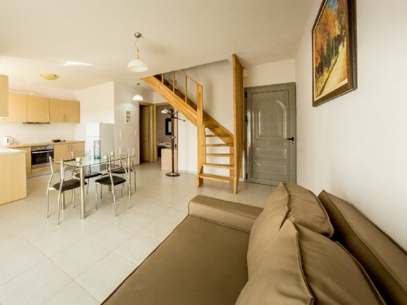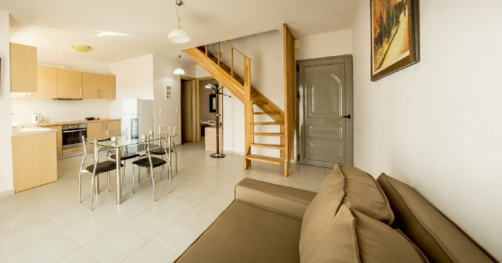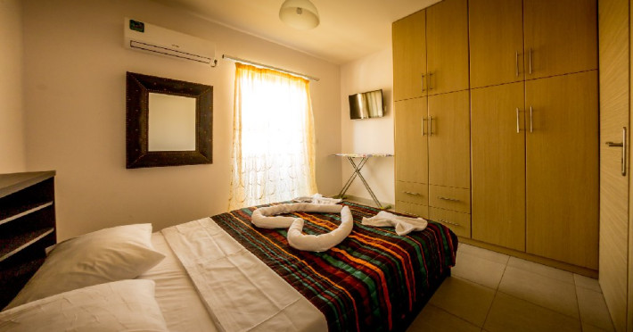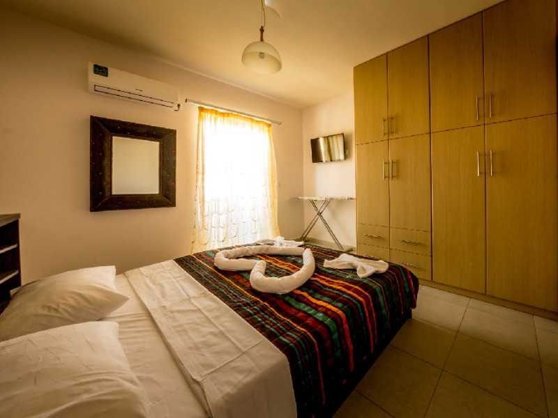 Dotari camere: Alexis Apartaments dispune de apartamente si maisonete spatioase, amenajate confortabil. Apartament (pentru maxim 4 persoane): situat la parter, alcatuit din dormitor cu pat matrimonial, camera de zi cu bucatarie utilata si canapea extensibila, baie privata. Maisonette (pentru maxim 6 persoane), situat la etajul intai, are doua nivele legate prin scara interioara: nivelul 1 are camera de zi cu bucatarie utilata, baie, dormitor cu pat matrimonial, terasa, nivelul 2 are doua dormitoare (un dormitor cu pat matrimonial + un dormitor cu doua paturi simple), baie. Toate unitatile de cazare sunt dotate cu aparate de aer conditionat (contra cost), seif (contra cost). Camerele sunt curatate de trei ori pe saptamana, asternuturile si prosoapele se schimba de doua ori pe saptamana.
