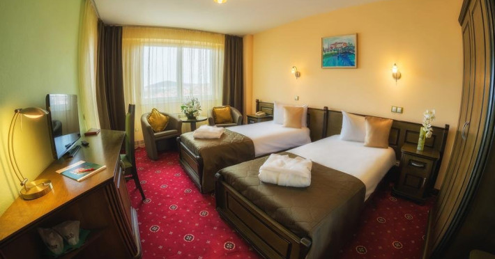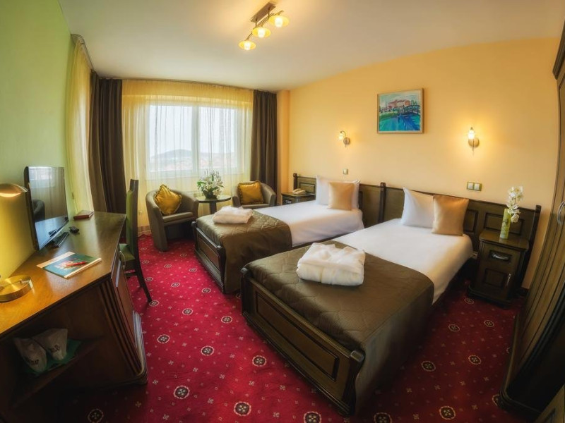 Facilitati Camere: Camerele sunt dotate cu aer conditionat, seif, minibar, uscator de par, cabina de dus cu hidromasaj, televizor LCD cu programe cablu TV satelit, internet WI-FI, telefon international.