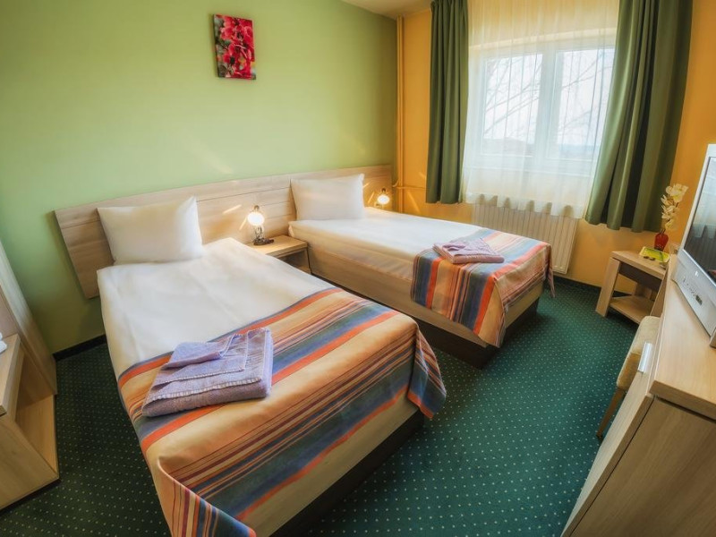 Facilitati Hotel: Hotelul are in dotare 35 de camere din care, dotate cu detectoare de fum si camere de supraveghere. Complexul dispune de parcare permanent supravegheata cu 300 de locuri.