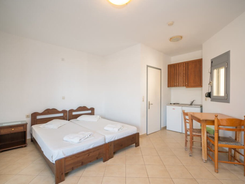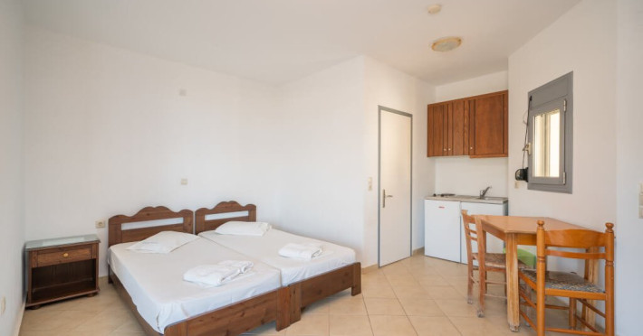 Dotari camera: A/C controlat individual (contra cost), chicineta, plita de gatit, vase de gatit/utensile de baza, ibric pentru cafea greceasca, frigider mic, TV cu ecran plat, seif, uscator de par, articole esentiale si produse de toaleta, suport pentru uscat haine, Wi-Fi, patut pentru bebelusi disponibil la cerere.