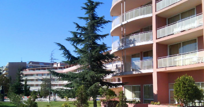 ARONIA BEACH 4* ( EX. Delta Beach Hotel) este situat in partea de sud a statiunii Sunny Beach . Este situat in prima linie, vis -a -vis de pitorestile dune de nisip din Sunny Beach. Este format din 5 cladiri, dispunde de receptie, lobby bar, cu terasa si restaurant. In gradina hotelului sunt 3 piscine si 1 piscina interioara, sauna , loc de joaca pentru copii, o piscina pentru copii, bar la piscina. Sezlonguri si umbrelute gratuite la piscina. Hotelul dispune de 230 camere si 5 Apartamente. Toate camerele au baie privata, aer conditionat, frigider, TV, telefon.