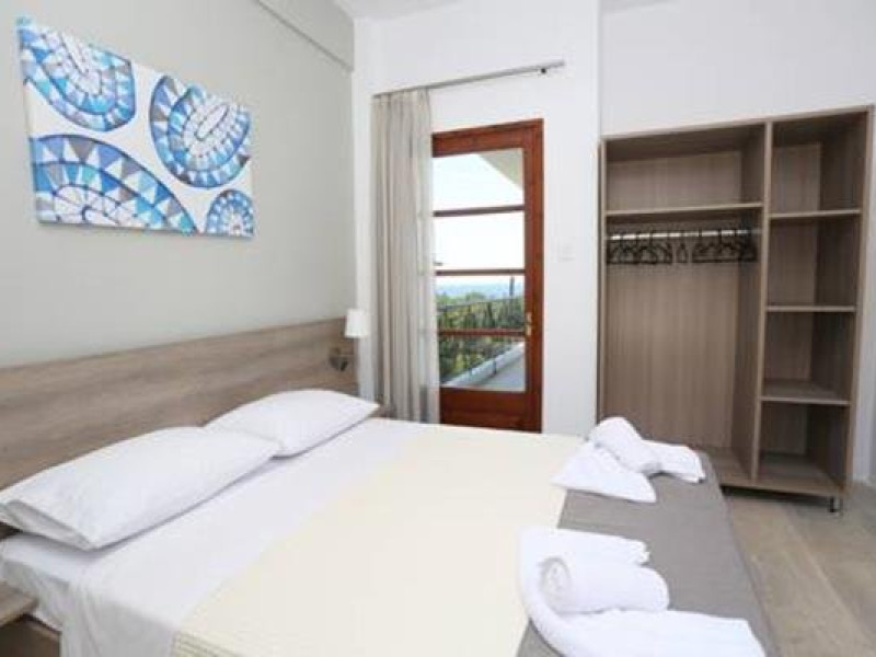 Hotelul Astron are 10 camere, receptie si sala de mic dejun (cu preparate calde si reci). Exist 2 tipuri de camere: duble si apartamente. Camerele duble (37 mp) sunt formate dintr-un dormitor, baie (dua), balcon sau veranda. Camerele duble pot gazdui 2-3 adulti. (sau 2 adulti + 1 copil etc.). Apartamentele (50 mp) sunt formate din 2 dormitoare, lounge, baie (dus) si balcon. Apartamentele pot gazdui 3-4 adulti. (sau 2 adulti + 2 copii etc.). Toate camerele includ: aer conditionat, WiFi, fierbator de apa calda (ceai, cafea), seif, TV, uscator de par, sampon, gel de dus si papuci.