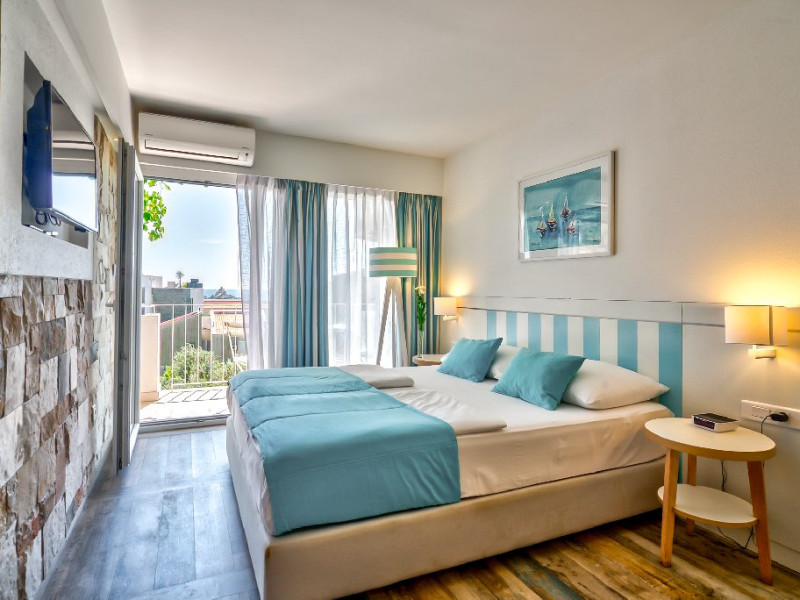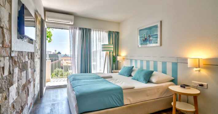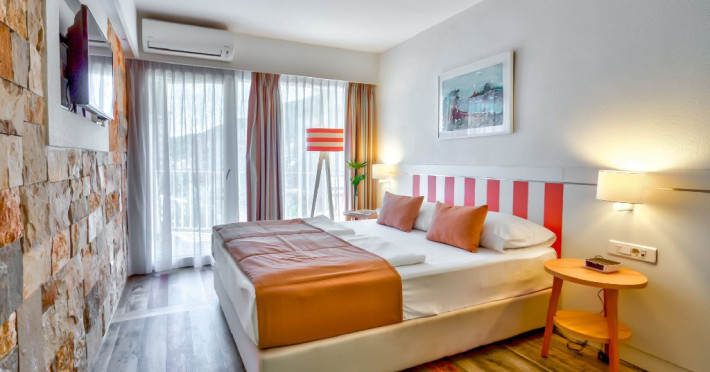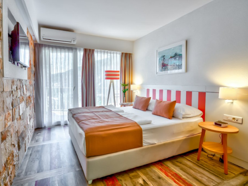 Hotelul ofera 171 de camere duble noi-noute si confortabile, distribuite pe mai multe segmente de cladire, precum si o sectiune separata cu 14 apartamente cu doua camere. Camerele duble standard sunt situate in cladiri terasate, inconjurate de verdeata. Toate camerele au terase sau balcoane. Facilitatile camerelor includ un pat francez, aer conditionat individual (gratuit), televizor cu ecran plat cu canale prin satelit, frigider, seif, telefon si uscator de par. Este posibil sa inchiriati un patut pentru copii - contra cost (aproximativ 7 EUR/zi).
