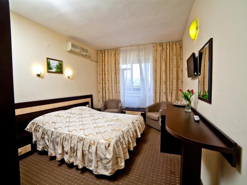 Facilitati Hotel Hotelul Parc dispune de 210 locuri, in camere Single si Double. Locatia ofera baza de tratament, plaja amenajata, parc de agrement, bazin pentru copii, sala de gimnastica, tobogan acvatic si teren de joaca si sport. Barul de zi are o capacitate de 40 de locuri.