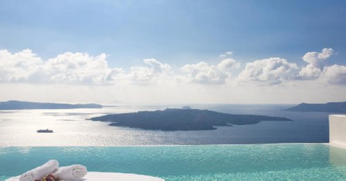 Descriere: Acest hotel elegant din Fira, capitala insulei Santorini, beneficiaza de o locatie maiestuoasa pe o stanca, cu vedere magnifica la mare. Cosmopolitan Suites are o piscina infinita suspendata de stanca si o terasa pentru plaja. Tip masa: Mic dejun Localizare: Este situat pe faleza inalta cu vedere spectaculoasa la caldera. Are acces facil la atractiile orasului: cafenele, restaurante, magazine, cluburi dar si centre culturale. Dotari camere: dispune de 10 camere decorate modern si dotate cu baie privata cu dus, aer conditionat, TV satelit, CD player, seif, minibar, halat si papuci de baie, produse cosmetice de baie, veranda cu vedere la mare. Facilitati hotel: piscina infinity, terasa cu sezlonguri si umbrele, bar la piscina, room service 24h. La cerere (cu plata): degustari de vin, spalatorie/calcatorie, masaj in camera, serviciu inchiriere masini. Website: www.cosmopolitan-santorini.com