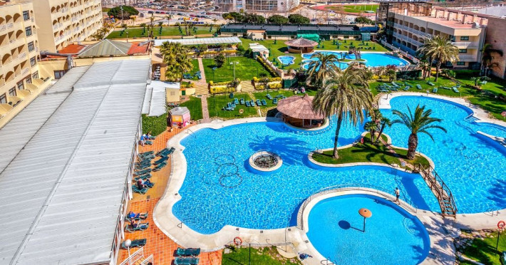 Facilitati EVENIA OLYMPIC PARK: Hotelul dispune de: receptie cu camera de bagaje, mini-club pentru copii, parc pentru copii, lift, AC si incalzire, teren de tenis , masa de ping-pong, gradina, biliard, masini de jocuri, terasa exterioara, 6 piscine, 3 baruri si 1 restaurant. Hotelul mai este dotat si cu: fitness, sauna, spa, solar, jacuzzi, baie turceasca, masaj (contra cost).