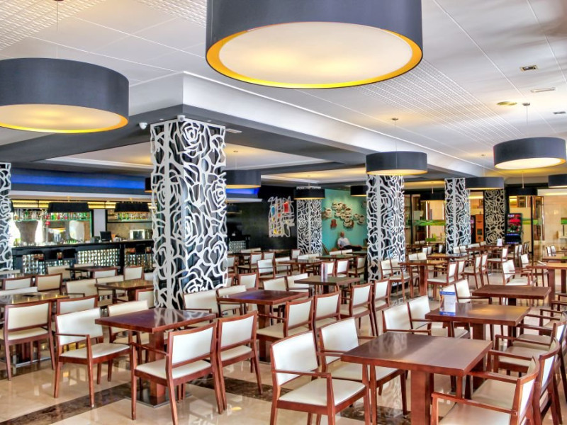 Dotari camere EVENIA OLYMPIC PARK: Hotelul dispunde de un total de 352 de camere, cu vedere la piscina sau la strada. Acestea au in jur de 20mp (maxim). Acestea sunt dotate cu: AC, incalzire, balcon, telefon, TV satelit, baie cu dus, prosoape, safe (contra cost). Paturile sunt twin.