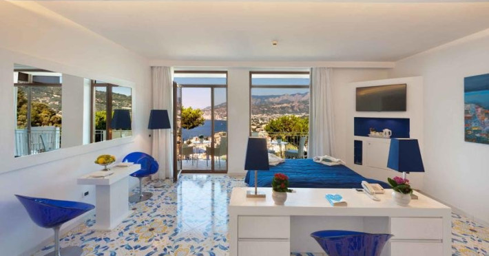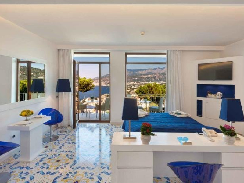 Descriere: Cu o locatie rafinata, eleganta, Grand Hotel President este situat deasupra peninsulei sorentine, oferind una dintre cele mai frumoase privelisti din lume, priveliste care a inspirat artisti si poeti. Atmosfera linistita a hotelului, terasele si gradina acestuia cu flori, il face o alegere ideala pentru o vacanta linistita. Localizare: Grand hotel President este situat la 3 km de centrul orasului Sorrento, iar hotelul pune la dispozitia clientilor un shuttle bus gratuit. Aeroportul din Napoli este la 50 km distanta de Sorrento. Facilitati hotel: Grand hotel President ofera un restaurant, un bar, o piscina in aer liber, sala de biliard, salon de infrumusetare, sala fitness, parcare privata, internet. Dotari camere: camerele de la Grand hotel President sunt echipate cu baie proprie cu cada sau dus, uscator de par, aer conditionat, telefon, TV satelit, internet wi-fi gratuit, mini bar(cu plata), seif electronic. www.ghpresident.com