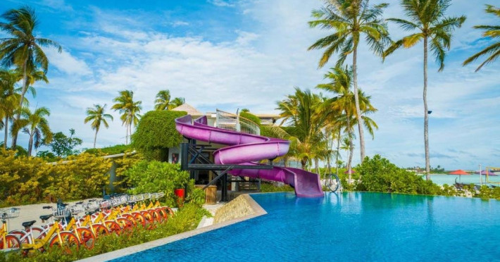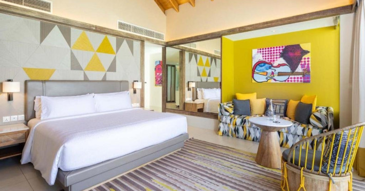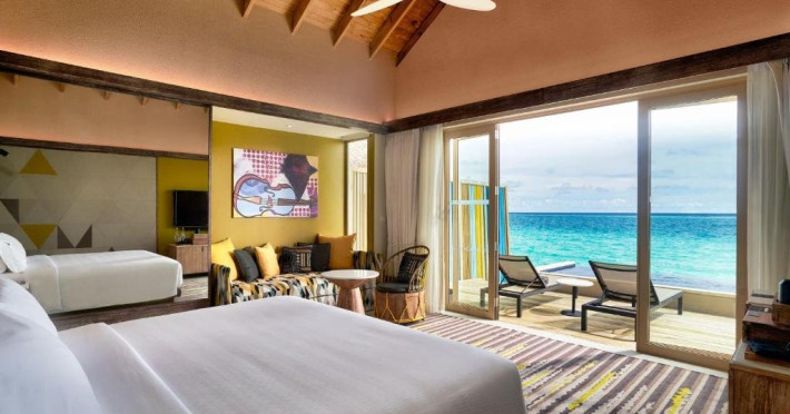 Descriere hotel: Hard Rock Maldives este situat in Laguna Emboodhoo si este la doar o scurta calatorie de 15 minute cu o barca rapida de la aeroport. Facilitati: Acest hotel impresionant gazduieste o piscina mare cu vedere la ocean, cu un tobogan si boxe subacvatice, precum si facilitati remarcabile precum centrul Rock Spa, sala de fitness Body Rock, Rock Shop si Hard Rock Cafe. Oaspetii au acces direct la The Marina. Restaurantul deschis pe tot parcursul zilei la Hard Rock Hotel Maldives ofera un mic dejun tip bufet in fiecare dimineata, iar oaspetii au numeroase optiuni delicioase pentru mese si bauturi, inclusiv la restaurantul Pan - Latin American. Pentru familiile cu copii, acest complex prietenos gazduieste Clubul Roxity Kids & Teen Spirit, oferind activitati inspirate de muzica special dedicate copiilor cu varste cuprinse intre 3 si 17 ani, pentru a se bucura impreuna cu intreaga familie. Dotari camere: Toate camerele din Hard Rock Hotel Maldives sunt dotate cu un pat confortabil Simmons Cool-Max, lenjerie de pat de inalta calitate din bumbac cu 300 de fire, televizor cu ecran plat si canale prin satelit, jocuri interactive, Soundbar, minibar si facilitati gratuite pentru prepararea cafelei si a ceaiului. Pentru a completa experienta, oaspetii se pot bucura de sesiuni de muzica in camera, avand acces gratuit la chitarele Fender si discurile Crosley. Localizare: Orasul Male se afla la o distanta de 8 km de hotel, in timp ce Maafushi este la 19 km. Cel mai apropiat aeroport este Aeroportul International Male, situat la 8 km de proprietate.Pagina Web: https://www.hardrockhotels.com/maldives/