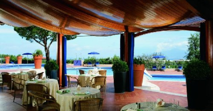Descriere: Hotelul este situat pe coasta nordica a peninsulei Sorrentine, inconjurat de livezi de lamai si portocali, cu vedere spre orasul Sorrento, Golful Napoli si spre Muntele Vezuviu. Localizare: Distanta pana la centrul vechi al orasului Sorrento cat si pana la plaja, se parcurge in aproximativ 10 minute de mers (1 km). La 500m de hotel sunt restaurante si baruri. Facilitati hotel: piscina situata pe acoperis, terasa cu sezlonguri si umbrele, 2 restaurante, 2 baruri, teren tenis, sala fitness, parcare (cu plata). Facilitati copii: piscina, loc de joaca, mini club, scaun inalt in restaurant, patut bebe. Dotari camera: Camerele sunt mobilate modern si dotate cu baie proprie cu cada sau dus, uscator de par, aer conditionat, TV satelit, internet wi-fi/cablu (cu plata), mini bar(cu plata), seif (cu plata), majoritatea cu balcon. www.sorrentopalacehotel.com