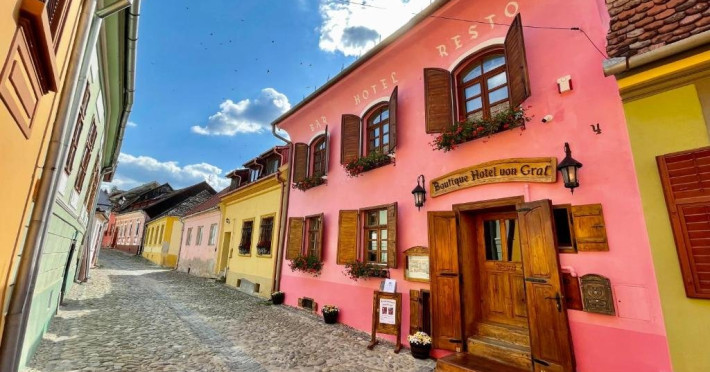 Boutique Hotel von Graf este una dintre cele mai vechi cldiri de acest fel din Sighisoara. Nu se stie in ce an a fost construit, ci doar c la 1734 exista. Prin numele pe care il poart, Boutique Hotel von Graf doreste s scoat in evident aspectul individual si unic al camerelor, fiecare prezentand caracteristici diferite de dispunere, dimensiune si decor. Turismul oferit este unul de experient, menit s intrige mintea si s rsfete simturile. V invitm s cltoriti in timp.