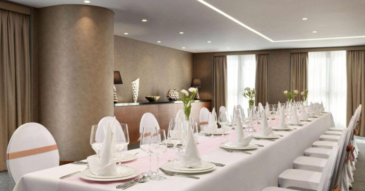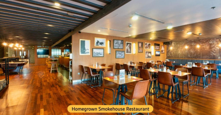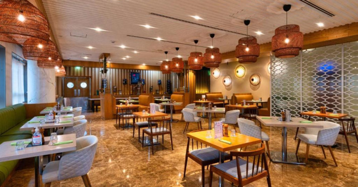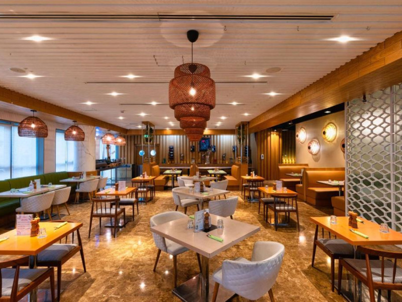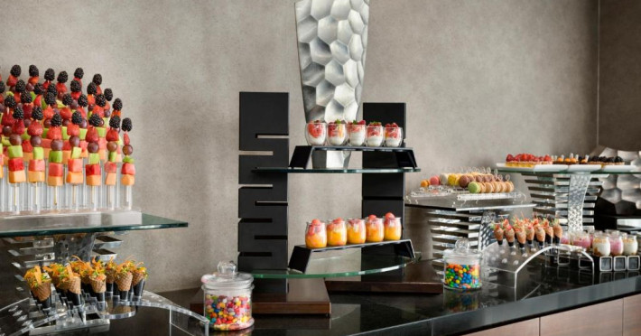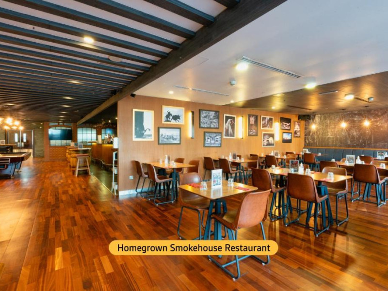 Proprietatea oferă o gamă variată de opțiuni culinare și băuturi, cum ar fi restaurantul The Blacksmith, specializat in preparate din carne afumată, și restaurantul italian Alloro Ristorante, care servește mic dejun, pranz și cină à la carte. De asemenea, există un lounge in hol care găzduiește cafeneaua Hello Café și un barul de la piscină Chillz, care servește gustări ușoare și băuturi răcoritoare. Oaspeții au la dispoziție room-service nonstop.