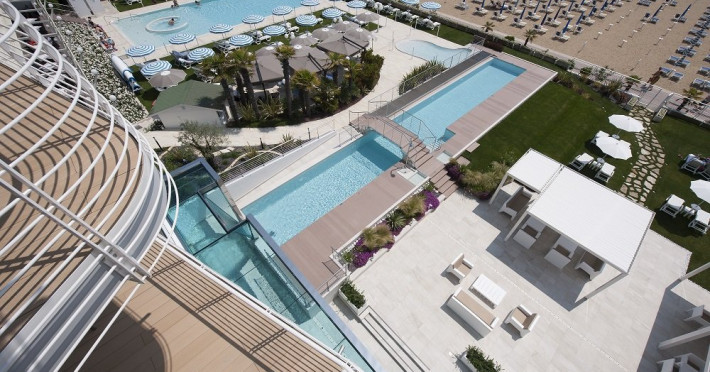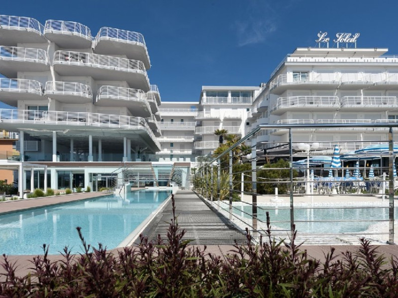 Facilitati HOTEL LE SOLEIL: Hotelul dispune de piscina (si pentru copii), lounge area, Wi-Fi gratuit in tot hotelul, bar, restaurant, terasa, spa & wellness la ultimul etaj, parcare nepazita in limita locurilor.