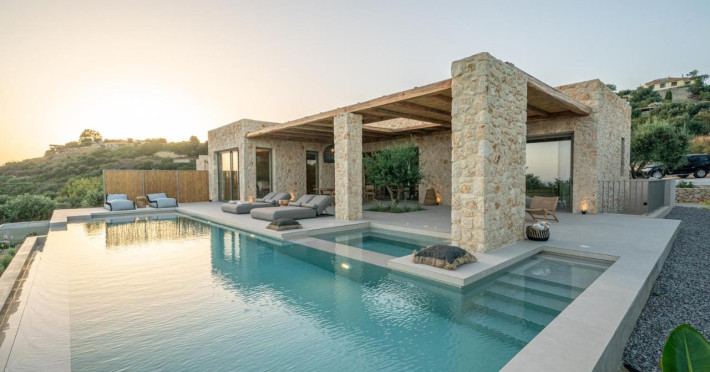 Welcome to Lithos Art Villas the perfect place to experience the essence of luxury accommodation. Discover our three distinct havens; Utopia, Euphoria and Armonia situated amongst established olive groves, where you will experience the perfect synthesis of tradition and modernity. The foundation of each villa is embodied within the philosophy and true love of the art of stone litho, originating from the ancient Greek word meaning large rock.Located in the beautiful Livathos region of Kefalonia, Lithos Art Villas are an absolute testament to the meticulous craftsmanship of traditional stone-built architecture. Designed by a team of leading architects from Greece, the villas offer the perfect blend of aesthetic beauty and environmental consciousness. Using both natural and eco-friendly methods, these villas incorporate sustainable materials, energy-efficient technologies and design principles that harmonise with the natural landscape.
