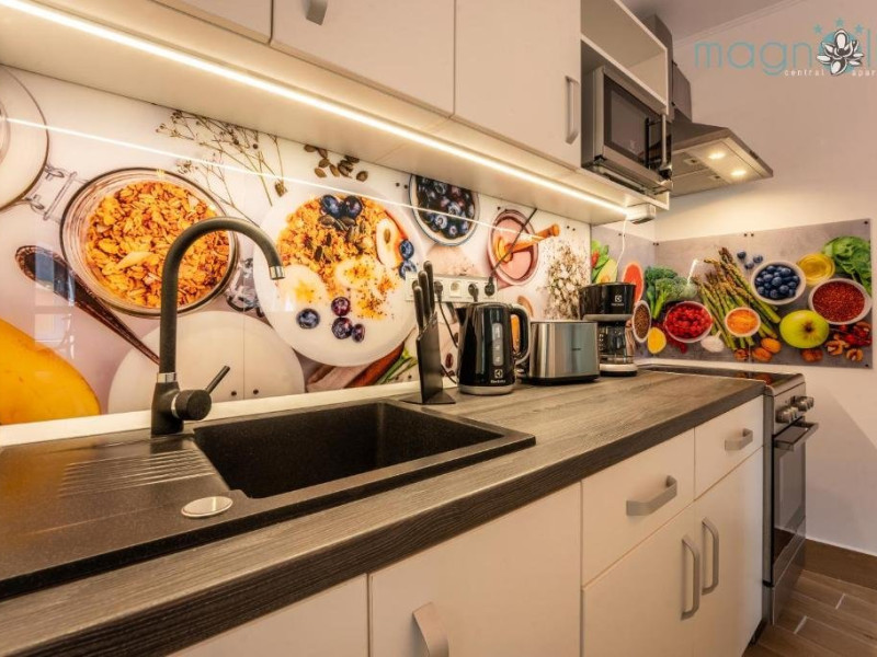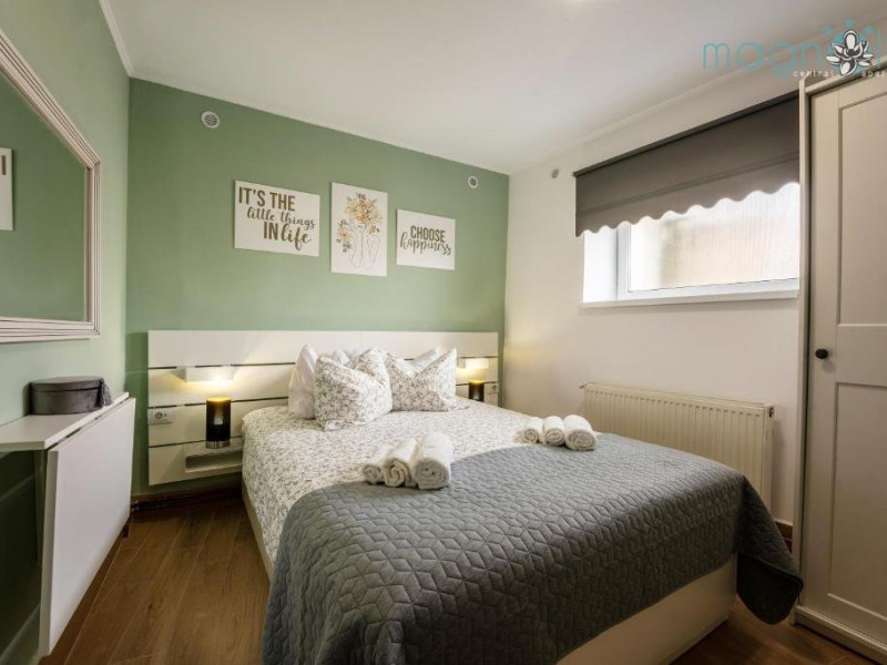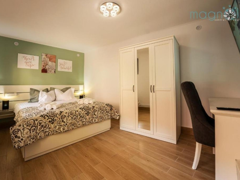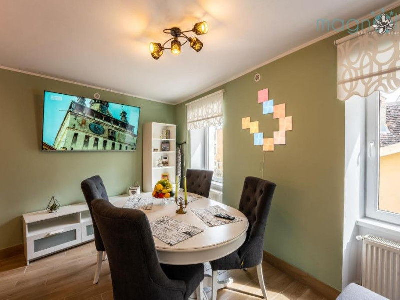 Magnolia Central Apartments, situated in a key position between the Medieval Citadel and the Old Town, steps from important tourist objectives offer apartments with two bedrooms or one bedroom, bathroom, living room and a kitchen. We provide support for all our guests by helping them have one of the best experiences in Sighisoara. Apartment was fully renovated in 2021, some of the facilities are: free high speed Internet, fully equipped kitchen, underground heating, air conditioning, security cameras, alarm system, washing machine with built-in dryer, oven, microwave, iron, kettle, coffee machine, toaster, cable TV, free Netflix and online registration. The famous Clock Tower, City Hall, Old Town, central parking area, restaurants and pubs, shops, exchange offices and the tourist train station in town are all located in the safe neighbourhood of Magnolia Central Apartment.