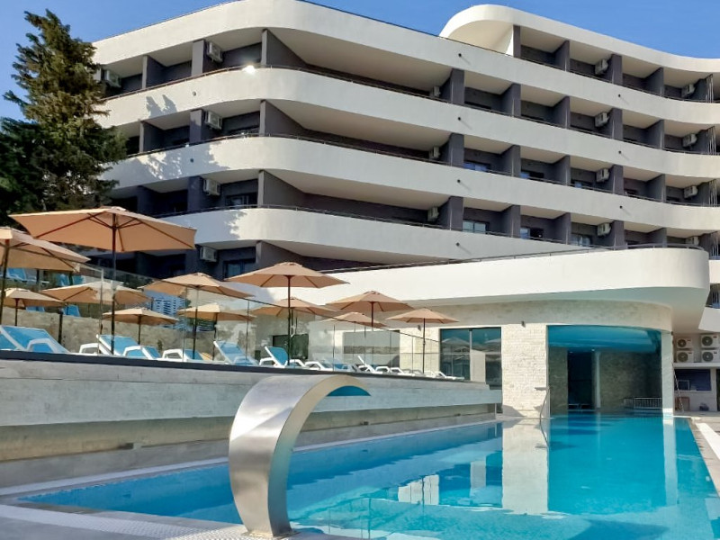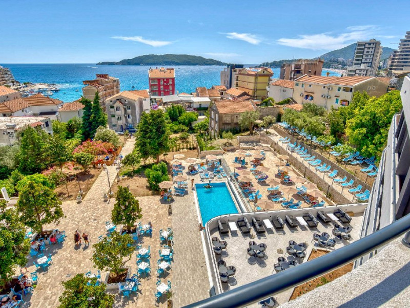 Montenegrina Hotel & Spa este un hotel modern situat intr-o zona fermecatoare. Acesta ofera un cadru unic si fermecator, combinat cu ospitalitatea locala si standardele hoteliere inalte. ________________________________________ Hotel -Receptie deschisa nonstop, hol, piscina in aer liber si piscina pentru copii, restaurant principal, cafenea, bar in hol, bar la piscina, Sky Bar cu vedere la Golful Rafailovic si plaja Becicka, terasa, gradina cu maslini, parcare gratuita (necesita rezervare), centru spa si wellness, club pentru copii, loc de joaca. Servicii de spalatorie si calcatorie sunt disponibile contra cost. -Acces gratuit la internet in zonele publice. Hotelul ofera camere duble si de familie de diferite standarde. Camerele sunt dotate cu aer conditionat, TV prin satelit, frigider si seif. Baia privata include uscator de par si articole de toaleta. In camera se poate adauga un patut de copii contra unei taxe suplimentare de aproximativ 7 EUR pe noapte. ________________________________________ Localizare Hotelul este situat in Becic. Atractii populare din zona, precum Cetatea Budva si Cetatea Mogren, se afla la aproximativ 4 km distanta. Cafenele si baruri se afla chiar langa hotel. Transferurile de la aeroport dureaza aproximativ 1 ora. ________________________________________ Plaja O plaja nisipoasa si stancoasa, cu o panta usoara spre mare, se afla chiar langa proprietate (150 de metri). Numeroase baruri si restaurante pot fi gasite de-a lungul plajei. Plimbandu-va de-a lungul frumoasei promenade, puteti observa contururile vietii marine antice. Serviciul de plaja este disponibil contra cost. ________________________________________ Tipuri de mancare si mese: All inclusive: micul dejun, pranzul si cina sunt servite in stil bufet. Barurile servesc gustari, bauturi reci (apa, sucuri, sucuri carbogazoase), bauturi alcoolice locale, precum si cafea si ceai. Hotelul are si un restaurant a la carte. Mesele pot fi savurate pe terasa, inconjurata de o fermecatoare livada de maslini. ________________________________________ Program sportiv si de divertisment Pentru cei mai mici, hotelul ofera un Club pentru Copii. Centrul de wellness dispune de doua saune finlandeze, o baie de aburi si piscine pentru copii si adulti. Oaspetii se pot bucura, de asemenea, de masaje corporale si tratamente faciale folosind tehnici si traditii mediteraneene. Masaje pentru juniori sunt disponibile pentru cei mai mici oaspeti. ________________________________________ Camere Camerele sunt dotate cu: -Baie: Cada si/sau dus | Uscator de par -Vedere: La latul gradinii -Facilitati camera: Aer conditionat individual | Seif | Frigider/frigider mic | Telefon | TV prin satelit | Wi-Fi ________________________________________ Pagina web: https://hotelmontenegrina.me/me/