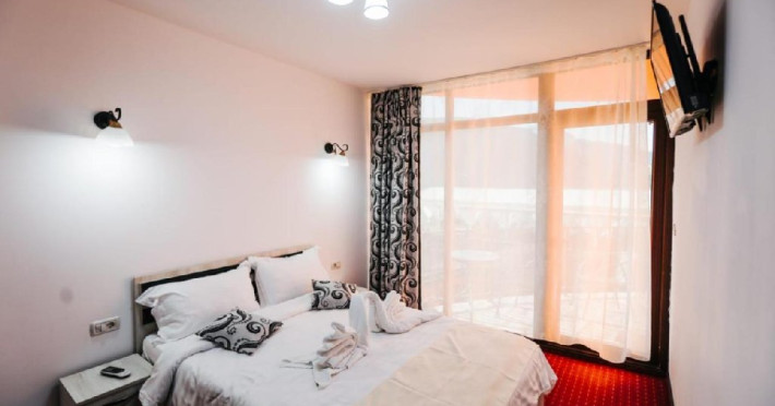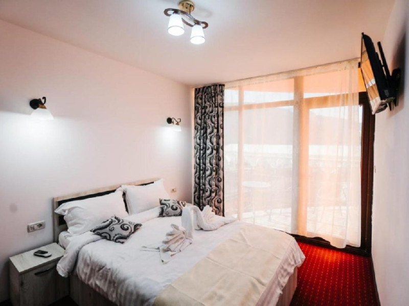 Fiecare camera a pensiunii este prevazuta cu aer conditionat, dulap, TV cu ecran plat, lenjerie de pat, prosoape, baie privata si terasa cu vedere la lac. De asemenea, in camere exista frigider.