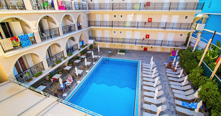 Descriere: Localizat pe insula Zakynthos, in statiunea Laganas hotelul este recomandat in special tinerilor si celor carora le place viata de noapte, fiind o locatie zgomotoasa.