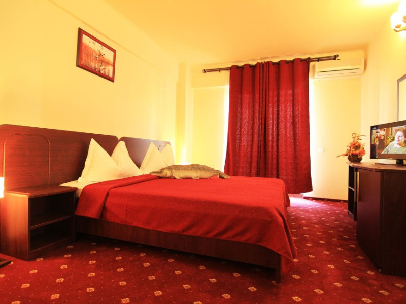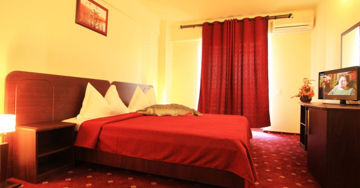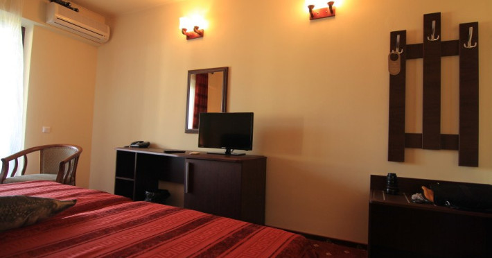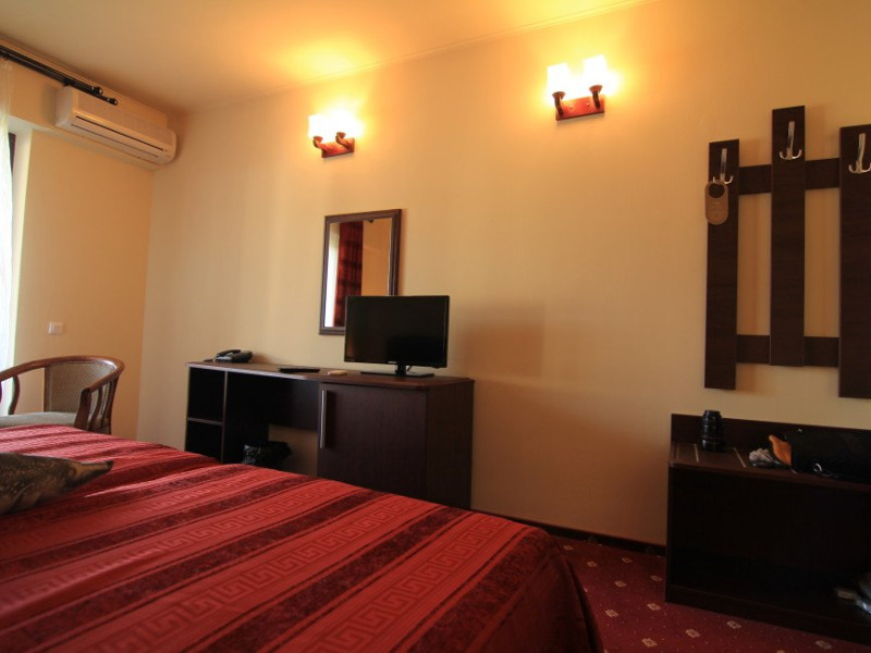 - 96 camere duble cu pat matrimonial sau doua paturi dotate cu Tv, telefon, minibar, aer conditionat, seif, baie cu dus si uscator de par, internet wireless, balcon. Grad de ocupare: max. 2 adulti si 1 copil pana in 14 ani.