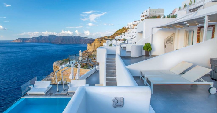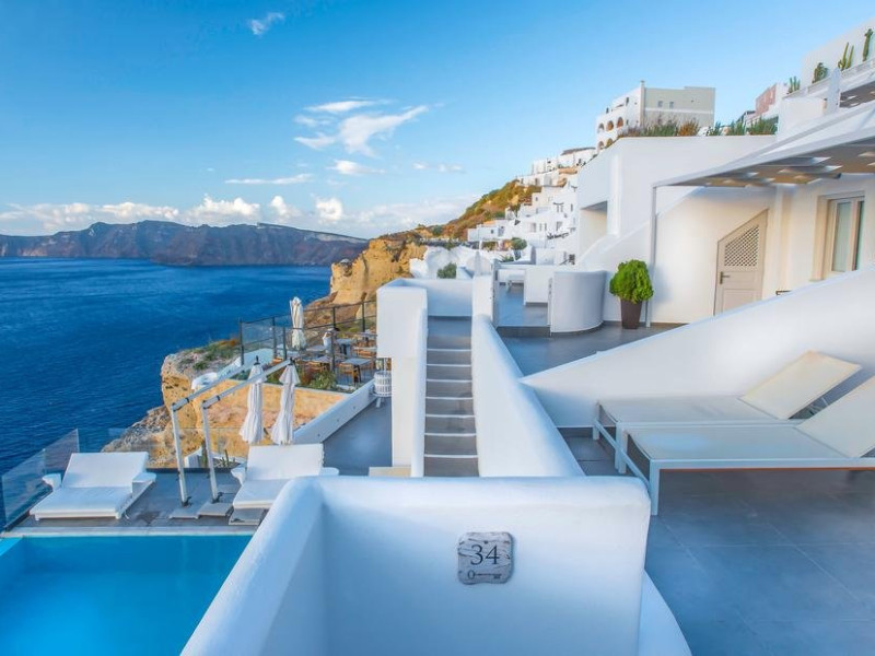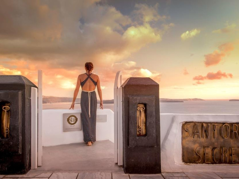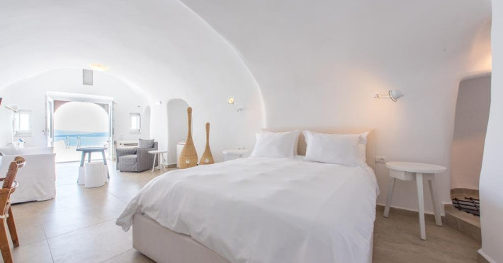 Localizare HOTEL SANTORINI SECRET SUITES: Hotelul este situat la 100 m deasupra nivelului marii, in faimoasa Oia, oferind o panorama incredibila asupra calderei si Marii Egee. Hotelul este situat la 10 km de binecunoscuta capitala a insulei, Fira. Aeroportul International din Santorini este situat la 18 km, iar portul Athinios la 20 km.