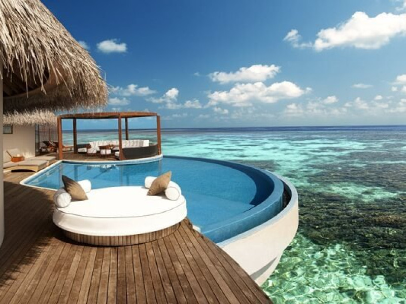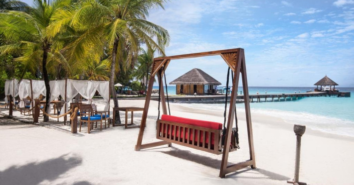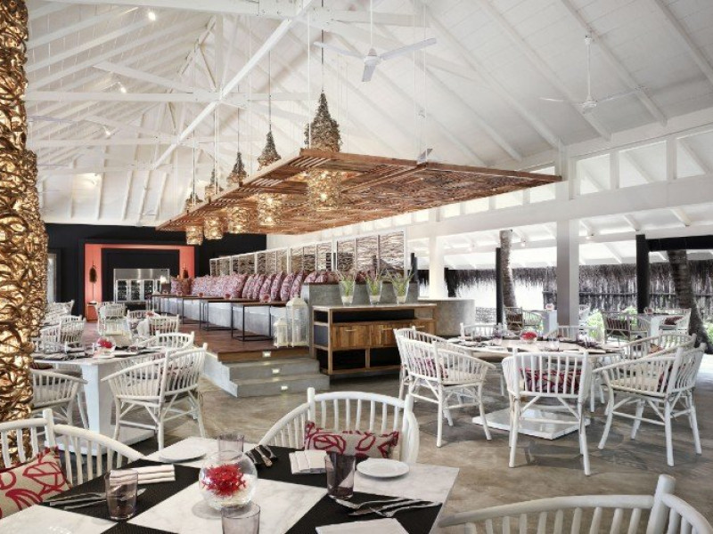 Descriere: Taj Coral Reef este unul dintre cele mai luxoase resorturi de 5 stele din Maldive si consta in vile de lux situate pe plaja sau pe apa. Localizare: Taj Coral Reef este situat pe insula Hambadhu, langa o laguna cu recif de corali din atolul Nord Male, la o distanta de 35 km de capitala Male. Facilitati hotel: Taj Coral Reef pune la dispozitia clientilor sai receptie 24 de ore, schimb valutar, 5 restaurante si baruri, piscina infinity, plaja privata, centru fitness si spa, o mare varietate de sporturi nautice si scufundari. Facilitati camere: Toate spatiile de cazare sunt moderne, spatioase si elegante si sunt dotate cu aer conditionat, ventilator, wi-fi, TV satelit, seif, mini bar, baie dotata cu uscator de par, facilitati pentru preparat cafea/ceai, terasa. Transfer: Transferul de la aeroportul international Male pana la hotel se realizeaza cu barca rapida in aproximativ 45 minute. Bagaj: Limita maxima a bagajelor este de 22 kg pentru bagajul de cala si 5 kg pentru cel de mana. Site: https://www.tajhotels.com/en-in/taj/taj-coral-reef-maldives/