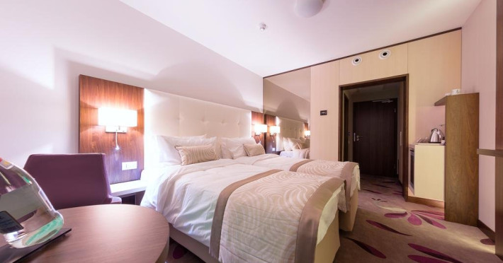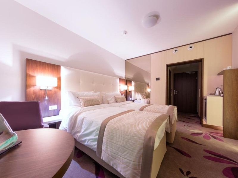 Camerele sunt dotate cu clima individuala, minibar, Smart TV, baie cu uscator de par si articole de toaleta gratuite.