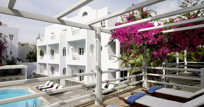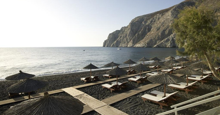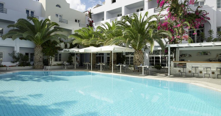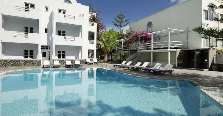 Localizare HOTEL VENUS AFRODITI BEACH AND SPA: Hotelul se afla in centrul statiunii Kamari, in vecinatatea zonei de baruri, restaurante si viata de noapte, foarte aproape de plaja cu pietricele de origine vulcanica.