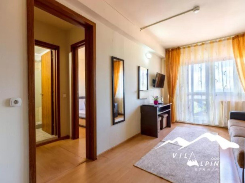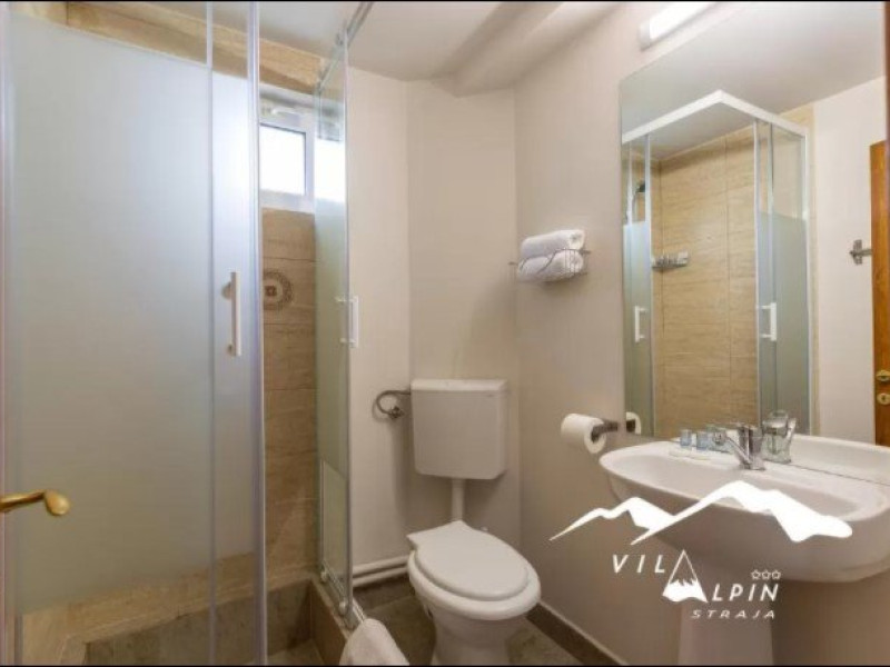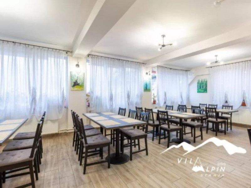 Vila ALPIN este o constructie noua, dispunand de 60 locuri de cazare cu un confort de 3 stele si este situata in statiunea turistica Straja, la aproximativ 50 metri de telegondola. Pozitionarea Vilei Alpin este excelenta, ea fiind amplasata intre cele doua partii cu nocturna, oferindu-va astfel o priveliste deosebita spre muntii Retezat. Caldura Vilei Alpin, personalul amabil, mancarurile alese si serviciile ireprosabile va asteapta sa petreceti un sejur de neuitat, o adevarata experienta. Statiunea turistica Straja, renumita pentru numeroasele sale partii de schi, este localizata in judetul Hunedoara, la o altitudine de 1445 de metri, in inima Muntilor Valcan, in zona Valea Jiului, la aproximativ 8 km de municipiul Lupeni. In statiunea turistica Straja sunt amenajate 12 partii de schi, fiecare dintre acestea fiind echipata cu instalatie de transport pe cablu (teleschi). Cinci dintre cele 12 partii de schi beneficiaza si de instalatie de nocturna, facand astfel posibila utilizarea partiilor pana seara tarziu. Facilitati Vila Alpin: Cazare in 24 camere duble si 3 apartamente; Centrala termica si apa calda permanent; Internet wireless; Restaurant si bar propriu; TV cablu in restaurant; Sala de conferinta; Parcare gratuita; Loc de joaca copii exterior; Partii de schi pentru perioada de iarna.