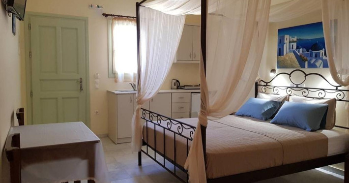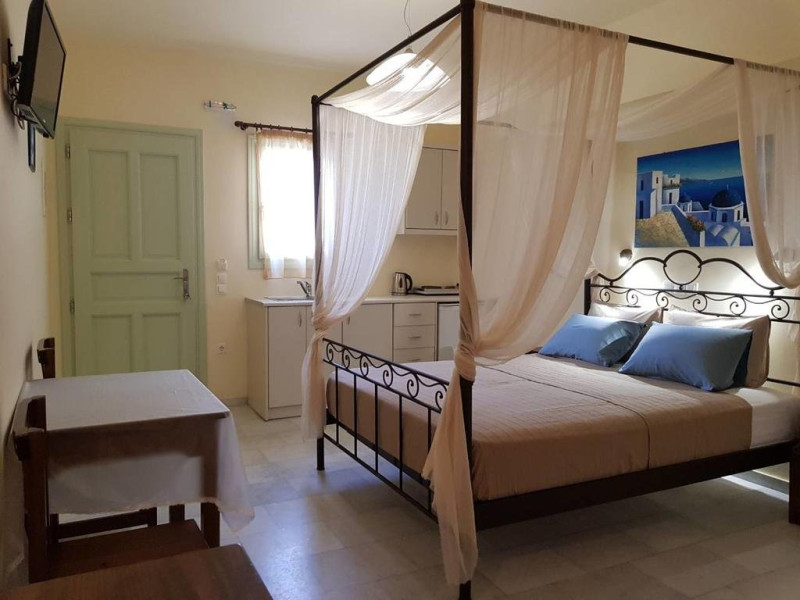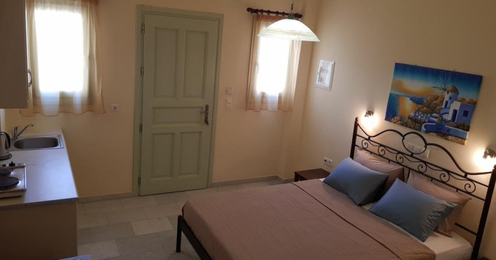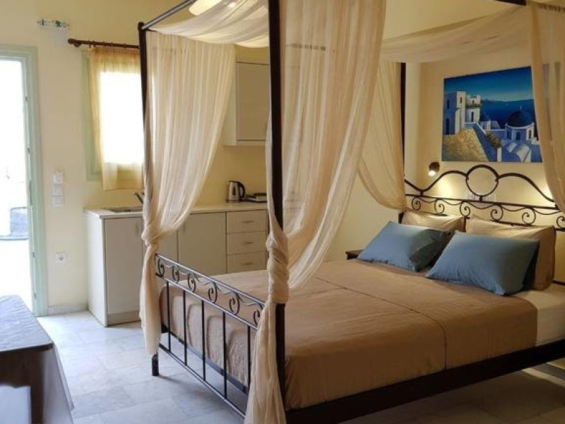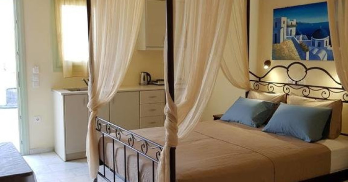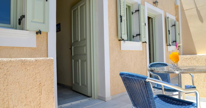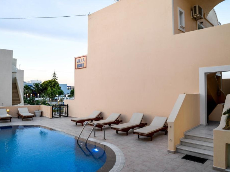 Descriere VILLA IRINI: Situata la doar 50 m de Kamari Beach, aceasta vila ofera oaspetilor sai cazare si servicii de calitate, precum si avantajul unei zone linistite, perfecta pentru petrecerea unei vacante relaxante, chiar langa malul marii.