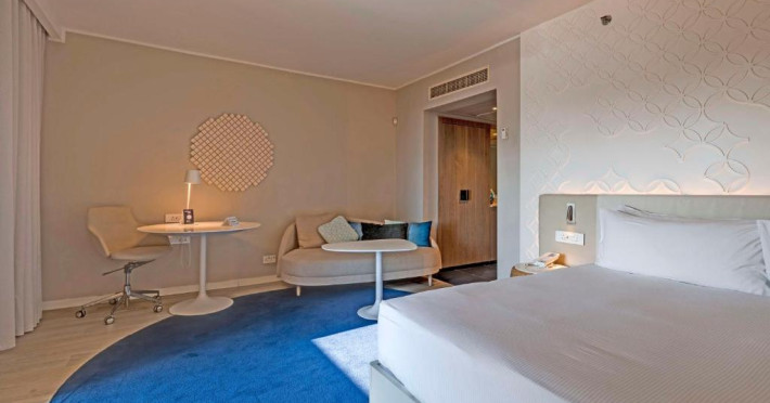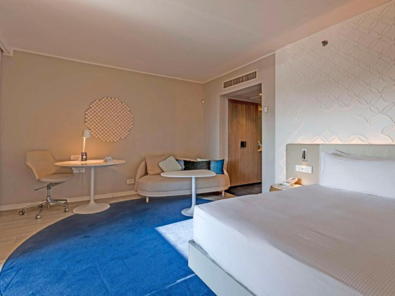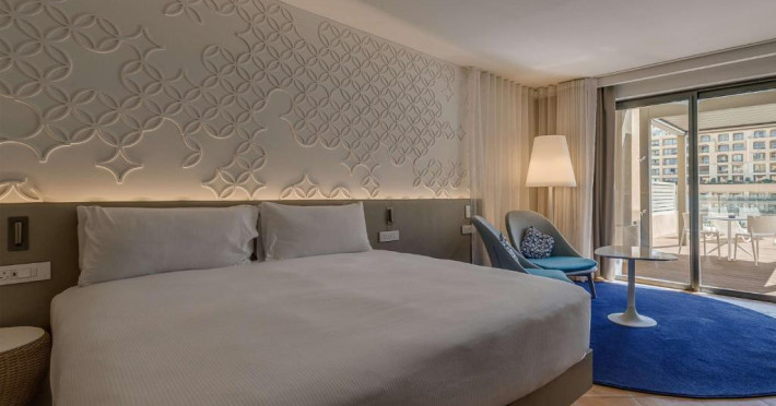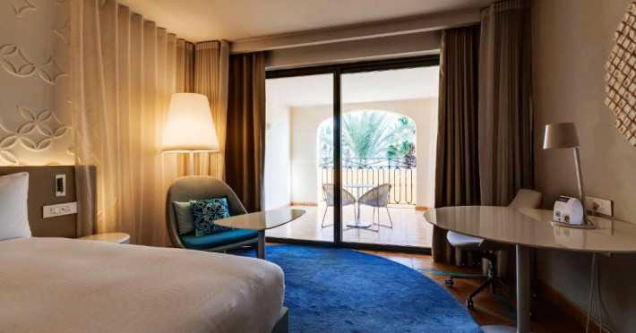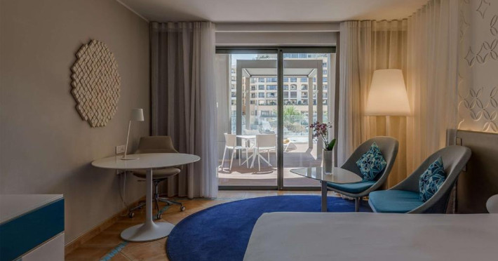 Camerele spațioase ale Hotelului Hilton Malta au un balcon mare cu vedere la mare sau la portul de agrement Portomaso. Toate camerele sunt prevăzute cu aer condiționat, acces la internet WiFi, aparat de ceai/cafea și TV LCD prin satelit. Unele camere oferă acces la Executive Lounge.