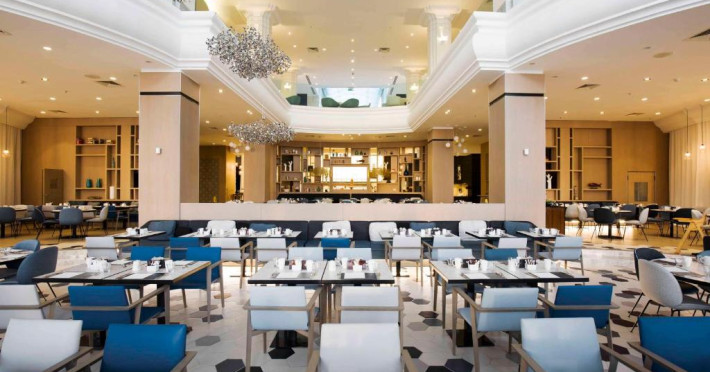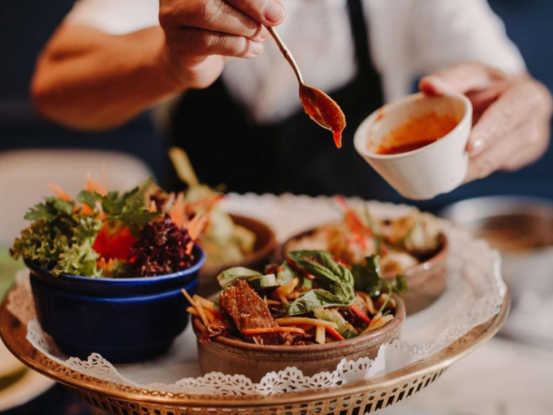 Restaurantul Oceana al hotelului servește cina langă piscină, iar restaurantul Blue Elephant este specializat in preparate din bucătăria thailandeză. Micul dejun este tip bufet.
